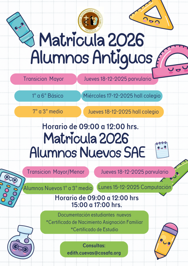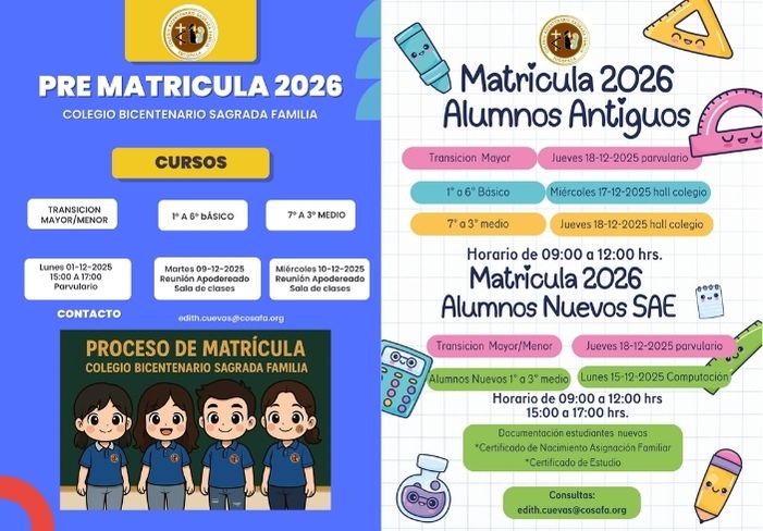 📣✨ Queremos compartirles una gran noticia.Nuestro Colegio Bicentenario Sagrada Familia , fue sede del Seminario de Inicio del Estudio de Prefactibilidad del futuro CFT para la ciudad de Tocopilla, un proyecto histórico que busca ampliar las oportunidades de formación técnica para nuestros jóvenes y para toda la comuna.La jornada se realizó en nuestro auditorio y contó con la participación del Gobierno Regional, distintas Seremías, autoridades locales, delegaciones, representantes del municipio, profesores y alumnos, quienes fueron parte de esta importante presentación liderada por Geoservice Ingeniería Civil y Eléctrica S.A.Para nuestra institución fue un honor recibir este encuentro que proyecta un futuro educativo más próspero y con mayores posibilidades para todos y todas. Como colegio, nos alegra aportar con nuestros espacios y ser parte de las conversaciones que construyen el Tocopilla del mañana. 🌅💙Seguimos comprometidos con el desarrollo de nuestra comunidad y con cada instancia que impulse nuevos caminos para nuestras familias y estudiantes.#cosafamásaltomáslejosmejor #cfttocopilla #ConstruyendoFuturo ... Ver másVer menos
